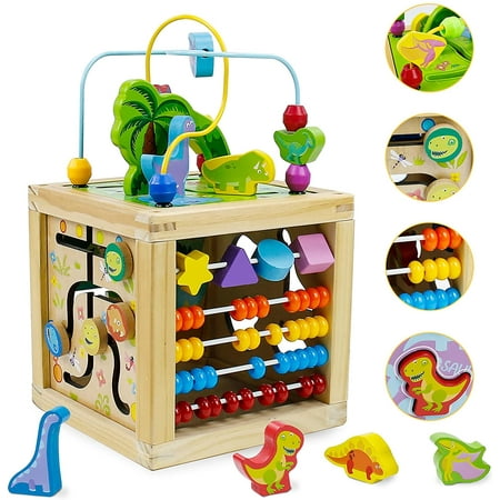 Wooden Activity Cube Center Toys 5 In 1 Dinosaur Wooden Baby Toys With Bead Maze Labyrinth Blocks Sorter Abacus Montessori Toddler Activities Table Educational Learning Toys Gifts For Kids Boys Girls Walmart Canada
